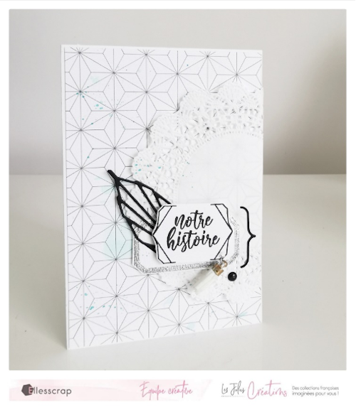 • Ajouter du fil argenté, une étiquette "ensemble", et une découpe. Assembler le tout en ajoutant un peu de colle mousse 3d pour apporter du relief